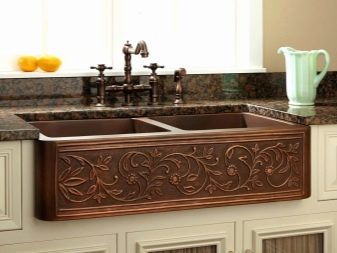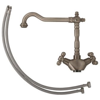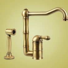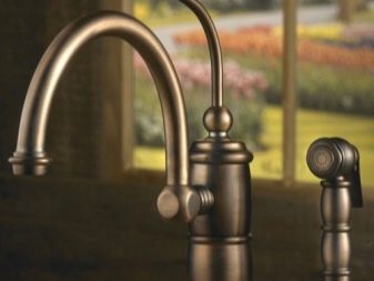 За кухненската мивка обикновено се купува миксер с висок чучур, така че да е удобно да се мие куп чинии под чешмата. В бронз можете също да направите кран, от който идва филтрирана питейна вода.