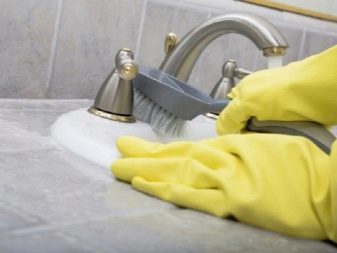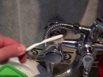 Силно замърсените повърхности могат да бъдат почистени, като се вземат 1 супена лъжица пшенично брашно, 6% оцет и сол. Получената каша се нанася върху смесителя за 10-15 минути, след което се отмива, повърхността се полира с мека кърпа от микрофибър.