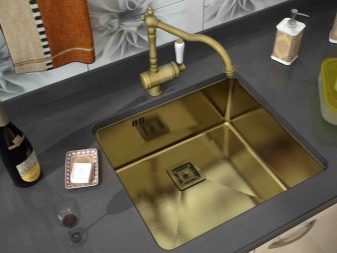 Комбинацията от цвета и текстурата на бронзовия миксер и мивка се оказва стилна. Освен това тази опция изглежда еднакво добре както в модерния интериор, така и в стаите в ретро стил..