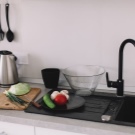 И, разбира се, естетическата страна на въпроса. Черната мивка изглежда много впечатляващо, със сигурност ще се превърне в акцент в кухнята, защото е трудно да се мине покрай такава красота.