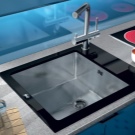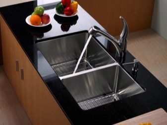 Също така, домакините се съветват да избират гладка структура на мивката. Те не абсорбират замърсявания и се измиват по -лесно от мазнини и следи от прясно измити съдове..
