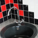 - Лесно възстановяване. С течение на времето дори най -издръжливият материал се износва, губи красивия си вид, появяват се пукнатини, стружки и други неприятни моменти. Но черна кухненска мивка е лесна за „освежаване“, ако шлайфате повърхността й и след това я полирате. Нарязаното парче лесно се залепва с акрилно лепило.