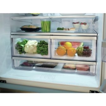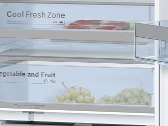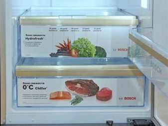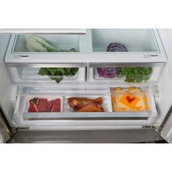 В хладилника има две зони на свежест. В един от тях температурата е нула, във втория има контрол на влажността. Благодарение на това не само зеленчуците и билките, но и месните продукти перфектно ще запазят качествата си за дълго време..
