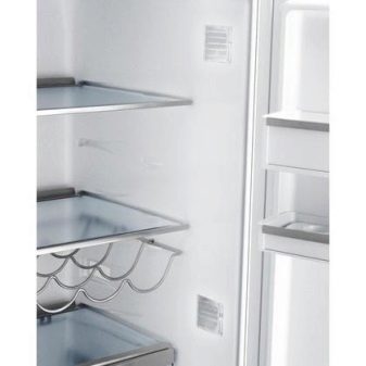 Функционалността на този модел ще ви изненада приятно. Интериорът на устройството е обмислен до най -малките детайли. Оптималният брой рафтове за съхранение на храни, бутилки за напитки или дори тенджери с храна.