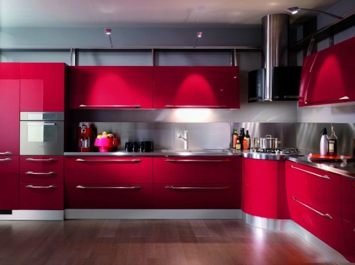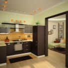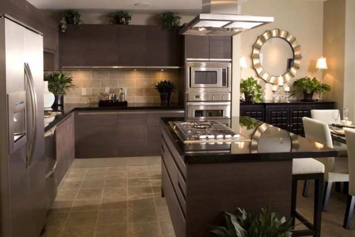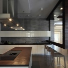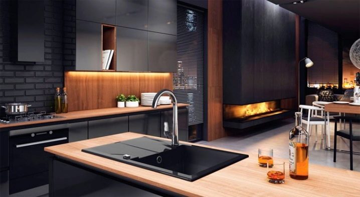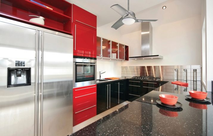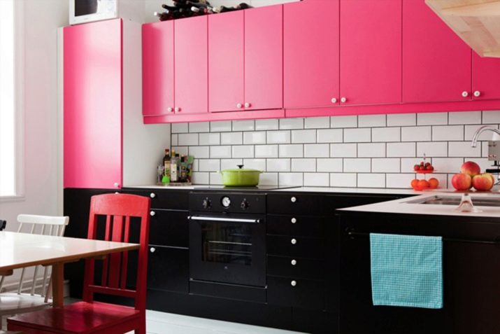 Друга интересна идея е противоположният дизайн на кухнята. Така че е възможно всички стени да бъдат ярки и наситени или, обратно, тъмни, но закачливи. В този случай частта на престилката ще трябва да бъде много лека или перфектно бяла. Такова светло петно ще изглежда стилно и модерно. Това е идеалният вариант за зониране на кухнята..