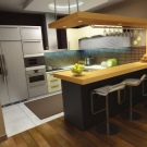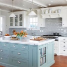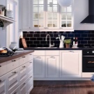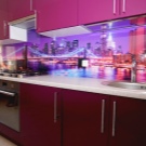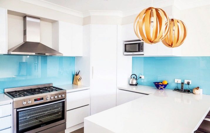 За да разнообразите дизайна на светла кухня, трябва да изберете ярка престилка, основното е умела комбинация от нюанси. Работната зона ще се превърне в сочно контрастно място, връхната точка на цялата стая. Основната характеристика на този дизайн е, че той е много стилен и универсален. Той е идеален както за модерен, така и за класически кухненски интериорен дизайн. Светлата цветова гама с контрастно завършване на работната зона ще се впише идеално в интериора в стила на високотехнологичен, класически, модерен, Прованс, а също така ще допълни скандинавския и морския стил.