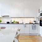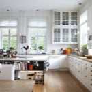 Светлата кухня е мечтата на почти всяка домакиня. Това е много модерно, свежо и ярко дизайнерско решение по свой собствен начин. Кухненско пространство със светли стени изглежда по -просторно, благодарение на такъв завършек, става по -визуално. Ето защо бяла кухня с ярък акцент в престилката е идеална за малък кухненски бокс. В допълнение, белият цвят в интериора на къща или апартамент винаги е актуален и никога няма да престане да бъде модерен..