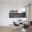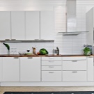 Друго модерно стилистично направление – минимализъм във вътрешността на кухнята. По правило това е доста прост и неутрален стил, който може да бъде създаден с комбинация от не повече от два или три цвята. Най -добре би било да декорирате стаята в този стил в бели тонове и да подчертаете престилката с богат нюанс. В този случай е по -добре да завършите работната зона с матови монохроматични материали. Чертежи и изображения по стените на кухнята в минималистичен стил не са добре дошли.