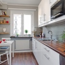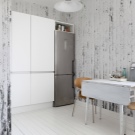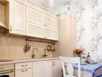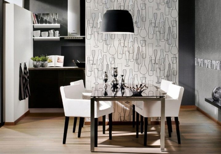 Същият недостатък е и с хартиените тапети. Те са много краткотрайни и лесно се подлагат на всякакви механични повреди. Ако обаче комбинирате хартиени тапети с други методи за декориране на кухненското пространство, тогава стаята като цяло ще изглежда много стилно. Хартиените тапети могат да бъдат допълнени с дебела стъклена престилка или керамични плочки, положени по краищата.