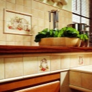 Много често кухненска престилка се създава от керамични плочки – повърхност, която се намира над зоната за готвене. Неговата особеност е, че трябва лесно да се почиства от всякакво замърсяване. Въпреки че по -често за кухненска престилка се използват не обикновени плочки, а специално стъкло, което е много пъти по -лесно да се измие от мазнини и други замърсители, които възникват по време на процеса на готвене.