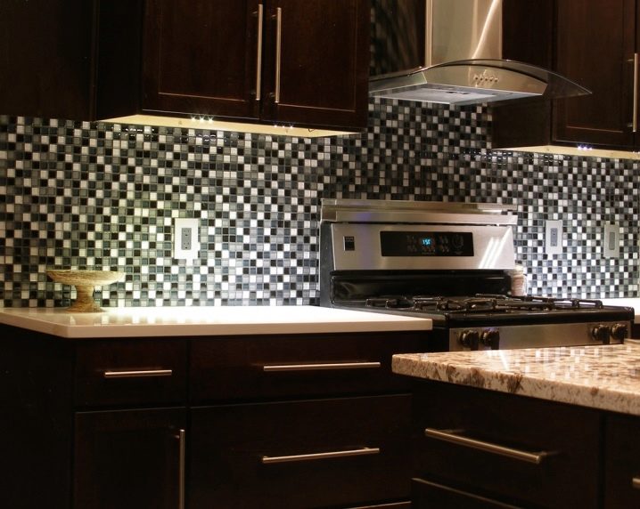 За декора на съвременните кухни те най -често използват класически плочки под формата на малки квадратчета. Те могат да бъдат малки, десет сантиметра по размер или по -големи..