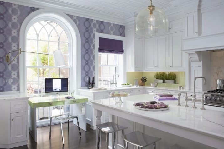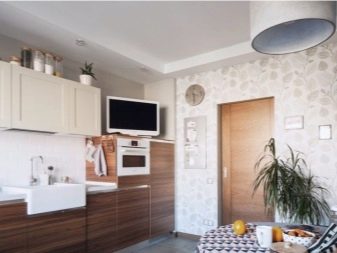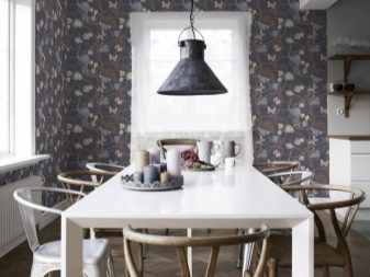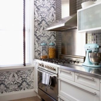 Хартиените тапети са добри, защото могат да бъдат украсени не само с монохроматични шарки, но и с пълноценни фотографии или картини. В съвременните кухни можете да намерите стенописи, изобразяващи град през нощта или някакъв атрактивен пейзаж..