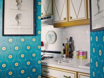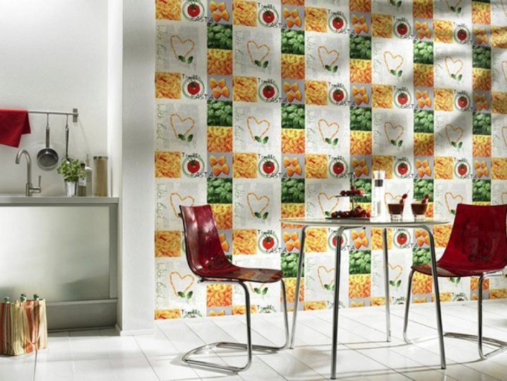 Освен това има специални видове тапети. Винилът е идеален за кухнята. Повърхността им е покрита със специален разтвор – поливинилхлорид. Предпазва стените от замърсяване. Освен това, като залепите такива тапети по стените, можете да ги измиете..