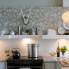 Друг често използван вариант за декориране на кухненски стени е тапет. Те са доста евтини, така че почти всеки може да си ги позволи. В същото време разнообразието от цветове и шарки е наистина невероятно..