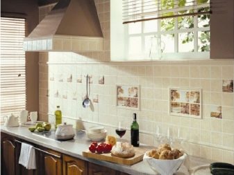 Като цяло керамичните плочки по кухненските стени изглеждат много органично. Ако искате да създадете наистина интересен дизайн за вашата кухня, тогава плочките са най -добре комбинирани с тапети. В допълнение, повърхността на стените често се допълва с различни декоративни елементи, например висящи чинии или снимки в рамки.