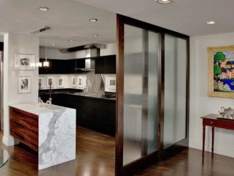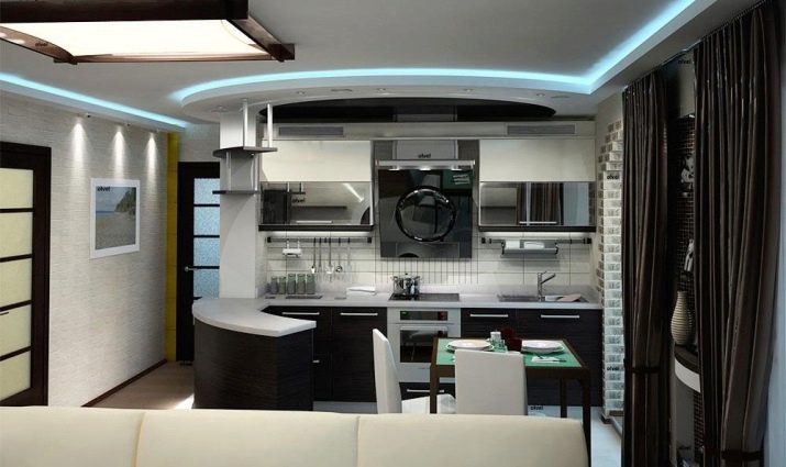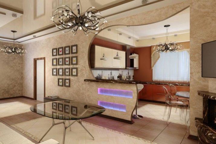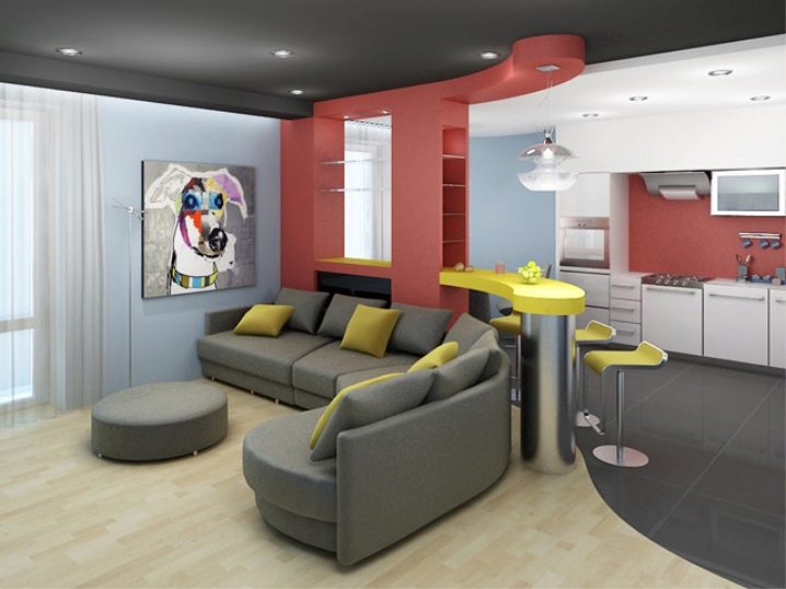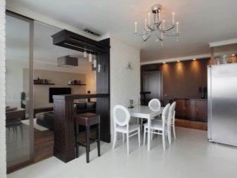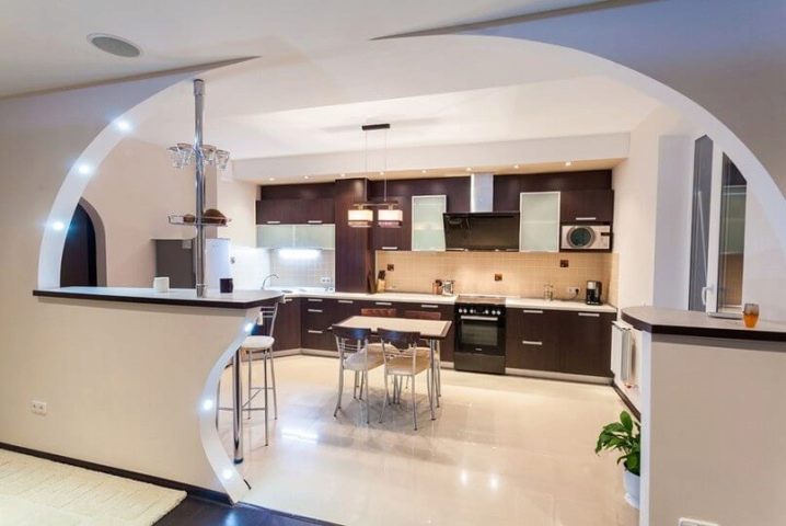 Ако сте планирали да направите кухня-хол в “Хрушчов”, ще трябва да премахнете стената между кухнята и съседната стая. Това не трябва да се прави напълно – можете просто да създадете нещо под формата на голям отворен отвор – тогава проблемът с зонирането ще бъде решен автоматично. В стари къщи, където няма коридор и преходите се извършват от стая в стая, можете просто да разширите вратата и да извършите красив завършек. Като алтернатива оставете част от стената и я направете къдрава. Ако сте премахнали стената напълно (разбира се, след като сте получили съответното разрешение за това), тогава на нейно място трябва да поставите бар брояча.