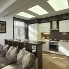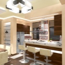 Студио кухнята не е толкова рядкост в модерен апартамент. В стремежа си да използват рационално всеки сантиметър, собствениците комбинират двете стаи в едно. Бар броячът в този случай зонира пространството и спестява много място. А оригиналният дизайн на кухня-студио с бар плот създава приятно настроение по всяко време на деня..