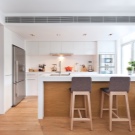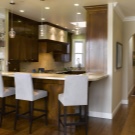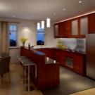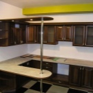 “Полуостров” е подходящ за по -компактно настаняване. В този случай бар броячът продължава работната повърхност на кухнята, завъртайки се на 90 °. В този случай дължината му може да бъде много различна. Има модели кухни с малък плот, буквално за 1 човек – закусвайте сутрин набързо, работете с лаптоп и т.н. Удължен плот за 3 или 4 души ще ограничи сериозно пространството и може да се превърне в пълноценна маса за хранене. Основното е, че при такова оформление отстрани има място за преминаване към кухнята..