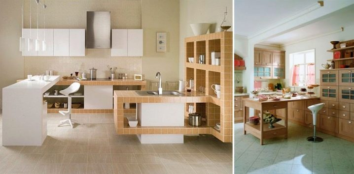 Има оригинални дизайнерски проекти, където „островът“ е доста голяма и масивна маса, а лентата сякаш се наслагва върху нея от едната страна. Оказва се многостепенна повърхност, от едната страна на която можете да готвите храна, а от друга – седнете и общувайте.