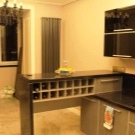 Пример за доста декоративен бар брояч. Изработен е директно от стената, а оригиналността на проекта е, че има странична и горна част. Лампите създават специално настроение.