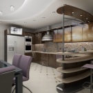 За голяма кухня-студио е подходяща опцията, когато има едновременно бар и маса за хранене. На масата можете да съберете семейството си, а барът служи за бърза закуска, лека закуска. Освен това много майки отбелязват, че е удобно да хранят бебето си на висока маса..