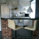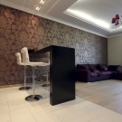 Висока и тясна маса с оригинални столове с дълги крака „модернизира“ интериора и му придава динамика. В апартаментите не се използва по предназначение – използва се не само за разговори на чаша. Бар броячът може да бъде: