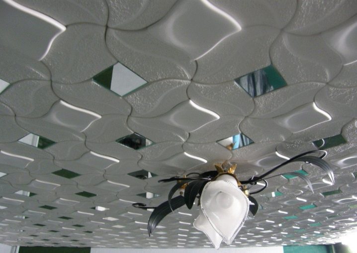 - плочки на тавана. Може би един от най -бюджетните варианти за декориране на тавана в кухнята. Състои се от панели от пяна с различни шарки, които просто се залепват за тавана. В този случай таванът не може да бъде измазан предварително – плочката е в състояние да прикрие неравностите по нея. В допълнение към ниската цена и лекотата на монтаж, плочката е устойчива на влага. Най -важното при декорирането на тавана по този начин е да се следи равномерното ниво на полагане и липсата на празнини, които ще бъдат много забележими върху готовия таван;