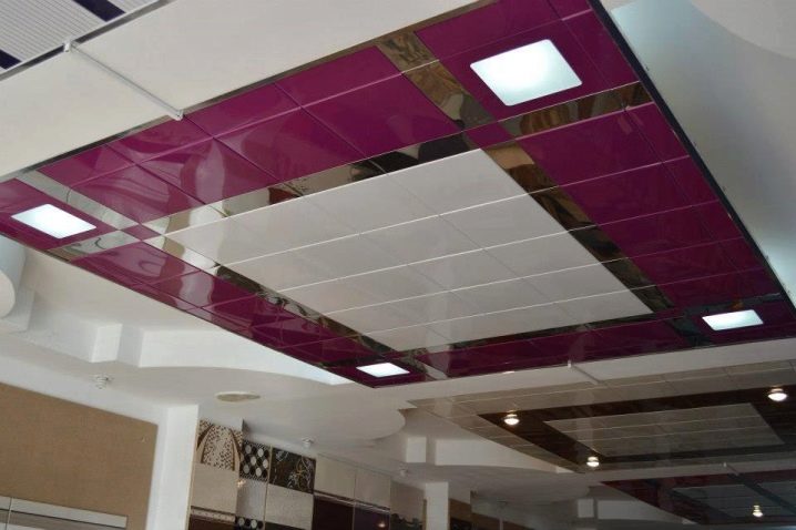 - модулни (касетни) конструкции. TЕто как таваните често се използват в публични пространства и офиси. В края на краищата всички промишлени комуникации могат да бъдат премахнати под тази структура и ако е необходим достъп до тях, само повдигнете една или няколко плочки. Тази опция за дизайн на таван е практична и издръжлива. Такъв таван ще бъде особено подходящ в хай-тек или минималистичен апартамент. Решавайки обаче да инсталирате модулен таван у дома, трябва да запомните, че инсталацията му „изяжда“ 10-15 см от височината на кухнята;