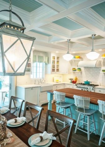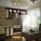 - използването на опънати тавани с имитация на витраж в средата може да бъде доста оригинално. Вградена осветена ниша служи както за източник на централно осветление, така и за централна декорация на кухненския таван. Това не създава илюзията за ниски тавани..