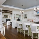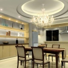 С високи тавани става възможно изграждането на многостепенни таванни конструкции. Нишите са създадени с подсветка, омайваща с мек блясък.