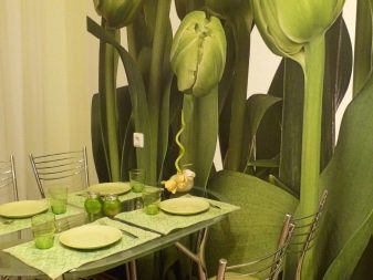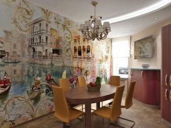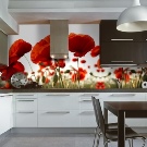 Тапет с цветя – с лалета, орхидеи, рози, маргаритки и други флорални мотиви е най -добре да се постави в зоната за хранене или където семейството се отпуска на закуска или вечеря. Удобна среда за релакс ще създадат изображенията на Венеция, Париж, Ню Йорк и всеки друг контрастиращ мегаполис или град с премерен живот: изборът зависи от дизайна на кухнята – за класика или Прованс изборът пада върху романтичните гледки , а за хай-тек и стил „минимализъм“ добър избор би бил изглед към нощния град или изглед отгоре.