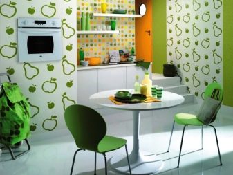 Комбиниран тапет ви позволяват да зонирате кухнята поради различния й модел и дори цвят, което ще бъде печеливша инвестиция в интериора на стаята.