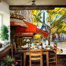За да въплътите част от френския хинтерланд в кухнята си, изберете фототапет, изобразяващ градски пейзажи (предимно Европа), например улиците на Париж, Виена, използвайте тапети за вестници, тапети с шарка и изображение на вода или живописна природа.