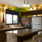- Безопасен материал – тапетът за вашата кухня трябва да бъде направен от него. Най-сигурният вариант за фототапети ще бъдат тези, при които мастилото е покрито с ултравиолетово втвърдяване. Това означава, че при повишена температура и влажност в кухнята тапетите няма да изпарят вредните емисии, защото в кухнята тези показатели са много по -високи, отколкото в други помещения..
