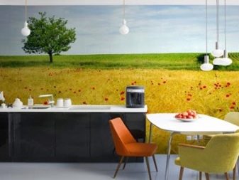Примерите за работа на тази или онази компания ще ви позволят да оцените качеството на фототапета за кухнята; освен това, благодарение на съвременните програми, можете предварително да видите бъдеща скица на кухнята с фототапет.