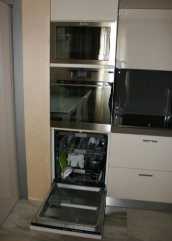 - Три в едно. Тази опция има повишена функционалност по очевидни причини. Закупувайки едно устройство, получавате три необходими елемента от кухненското оборудване наведнъж. Към фурната и съдомиялната машина се добавя модерен котлон. Повечето модели предполагат вградена готварска повърхност в кухненския шкаф. Най -удобното място за разполагане на такова оборудване е до масата за рязане..