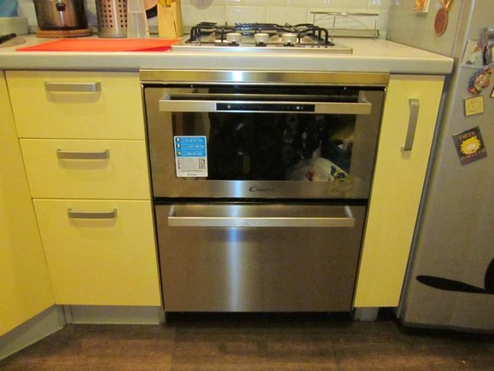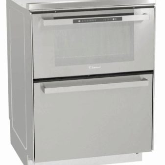 - Две в едно. Съдомиялна машина и фурна, представени от един домакински уред, са най -популярният вариант. Най -често съдомиялната машина се намира под фурната. Естествено, обемите ястия, които се поставят в него наведнъж, ще бъдат много по -малки, отколкото в отделен модел. Но обемът в устройството е напълно достатъчен за измиване на чиниите след еднократно хранене на семейство от 3-4 души.