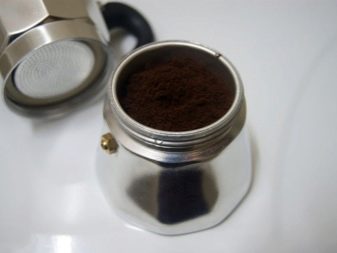 - Средно смлени кафени зърна (на опаковката често има пиктограма под формата на тенджера за кафе) се изсипва в контейнер с мрежа до половината. Резервоарът не е напълно напълнен, за да се избегне изгаряне.