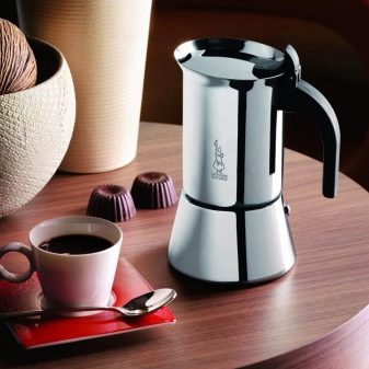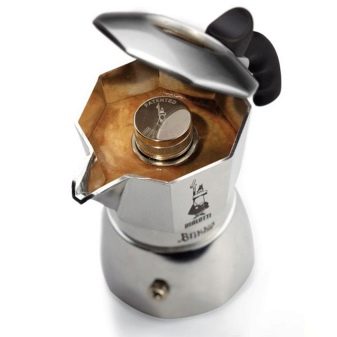 Класическата кафемашина Bialetti има не само контролен вентил, но и дупка в капака. Това ви позволява да приготвите еспресо с шикозна кафява пяна, която не разрежда кондензата, капейки в готовата напитка. Има модели с удебелено дъно за индукционен плот.