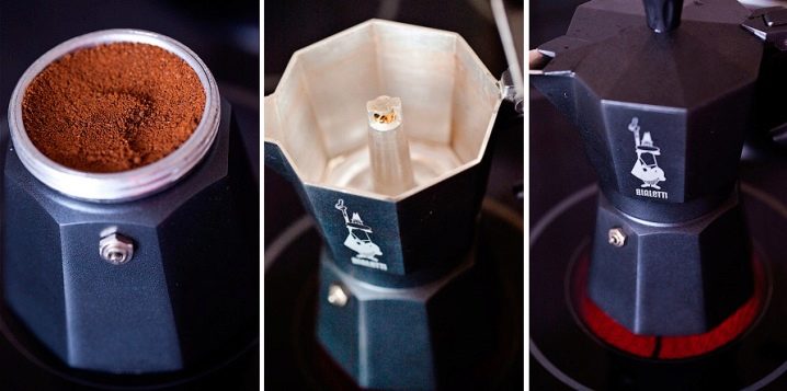 - вземете кафе със средно смилане, препоръчително е да го разхлабите, без да го натискате в таблетка в сито. На опаковката трябва да има икона за кафемашина за гейзер;