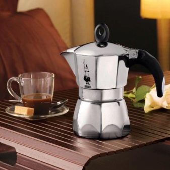 Кафемашина за капучино с машина за капучино е друга разработка на италианската компания. Това е устройство, което вари кафе и разбива млякото на пяна едновременно. Има класическа версия за открит огън, има електрическа. Първият ще трябва да се потърси, за да свикне да прави оптимален огън. Много е удобно, че тенджерата за кафе може да свари класическо еспресо, да направи капучино и, ако не спуснете клапана, лате.
