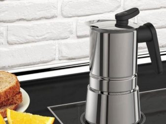 Индукционната кафе машина за гейзери е неръждаема, практична и има красив външен вид. Дръжката е найлонова, отличава се със своята здравина и безопасност, не се нагрява. Такова прекрасно устройство е подходящо за използване на всички видове печки, включително индукционни.