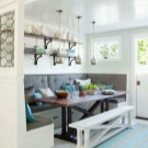Дизайнът на ъгъла трябва да бъде в хармония с интериора на кухнята, така че не бързайте да купувате луксозния модел на лъскавия диван, който толкова харесвате, който е украсен с бродерия и кристали. Спомнете си дали вашата кухня е направена в селски стил? Въпреки че, ако има възможност да създадете фюжън стил върху него, вземете това, което толкова ви е харесало.