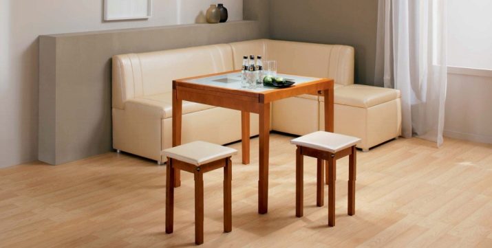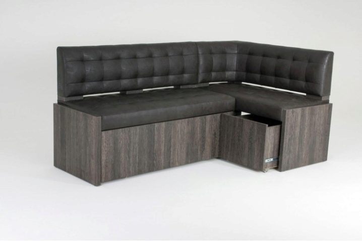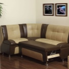 - Тези дивани са многофункционални – тук можете да седнете, да използвате мястото за съхранение и да спите. Ако сте собственик на малък апартамент и тесен кухненски бокс, такъв ъгъл ще бъде истинска полза за вас..