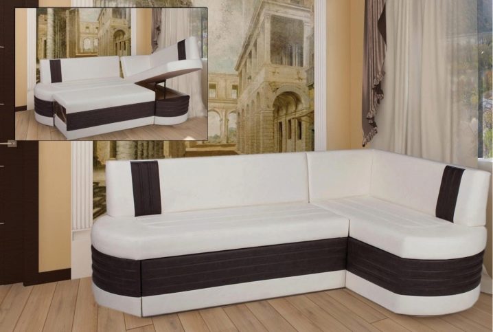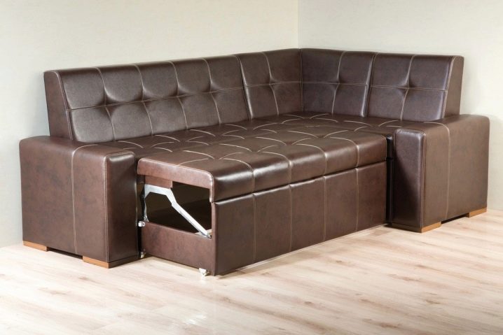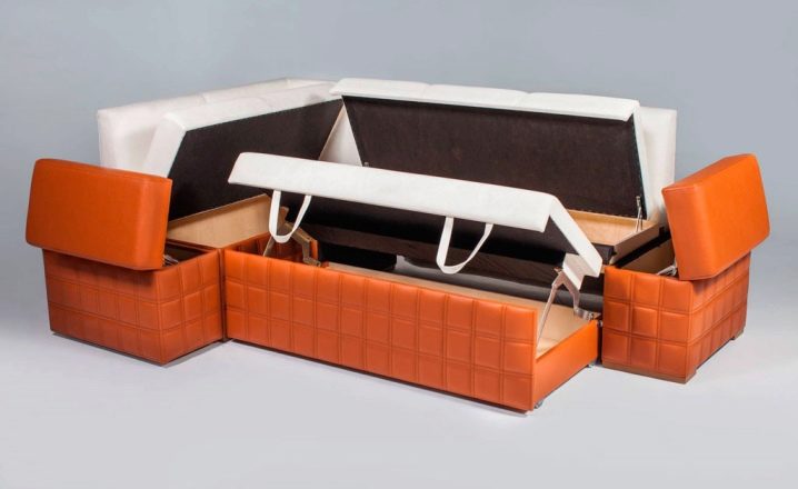 Ако диванът има допълнителни функции, тогава за кухня с малък размер това ще бъде истинска дарба. Наистина, с помощта на много опции, кухненската зона е забележимо спестена и се решават много важни проблеми за тази стая..