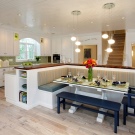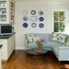 Но ако кухнята е доста просторна, тогава диванът ще изглежда страхотно, а не срещу самата стена. В този случай може да се използва като разделител на зони, например готвене и хранене. Ако случаят е такъв, тогава „лицето“ на дивана трябва да гледа към зоната за хранене и с гръб към зоната за готвене..