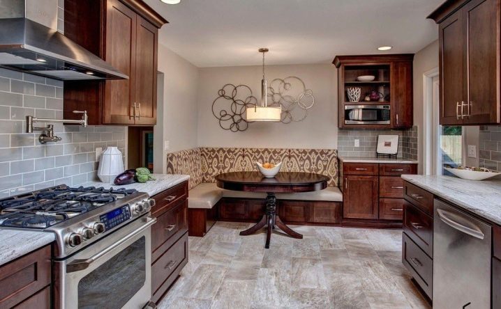 Най -често тази мебел се намира близо до прозореца на кухнята, в ъгъла в съседство с нея. Близо до дивана има маса за хранене и по този начин това място се оказва пълноправен кът, където семейството може да се отпусне или да вечеря. Дизайнерите виждат някои предимства в това местоположение на ъгъла..