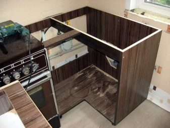 Сглобяването на тази част от кухненския комплект е доста лесно. Преди да продължите със строителството, първо трябва да съставите план-схема и да изберете подходящите материали (листове, крепежни елементи и аксесоари). Процесът на инсталиране на ъглов шкаф може да бъде описан на няколко етапа: