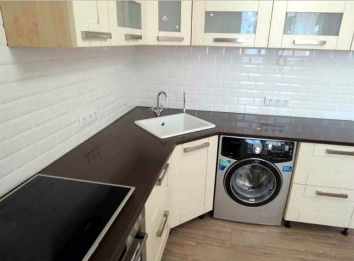 - Заема много по -малко място, което ви позволява да спестите място. За да постигнете такъв положителен ефект, трябва правилно да изберете всички останали атрибути на кухненския комплект..