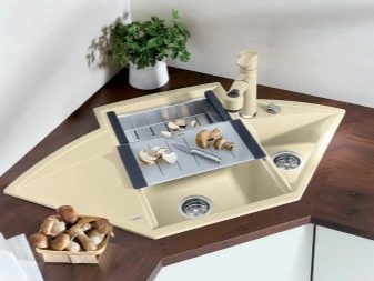 Стандартните модели ъглови мивки не са универсални и практични. За да получите качествен дизайн, по -добре е да го направите по поръчка.. Тя трябва да има няколко функционални характеристики: